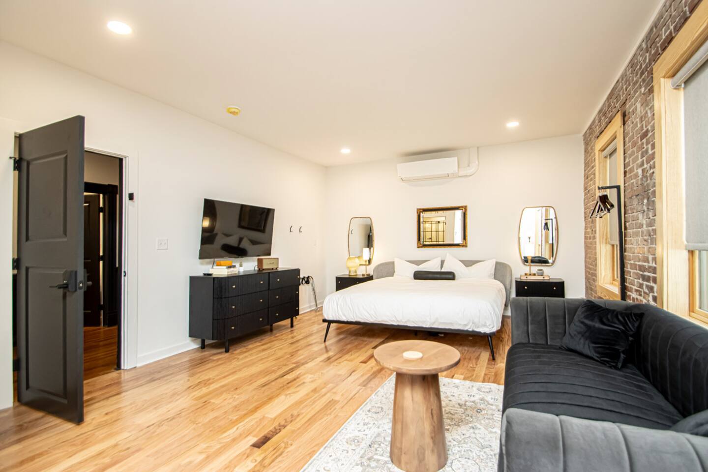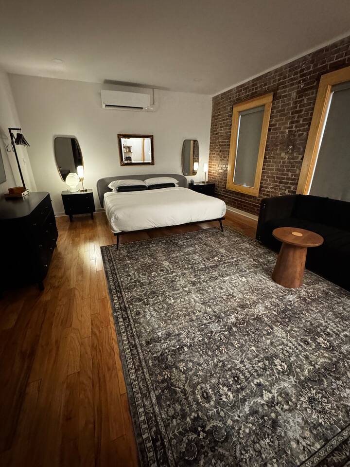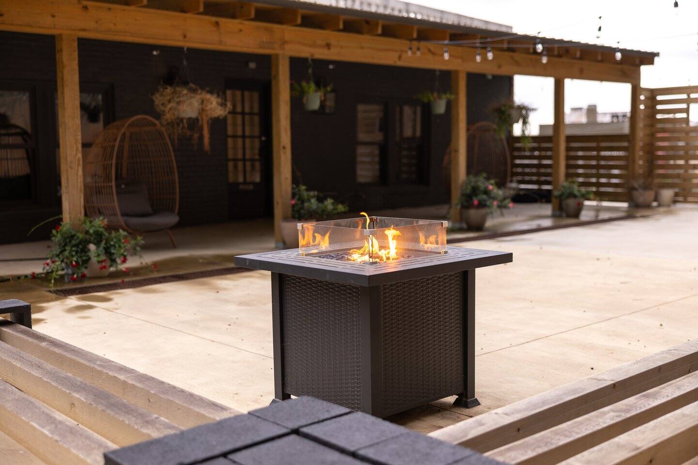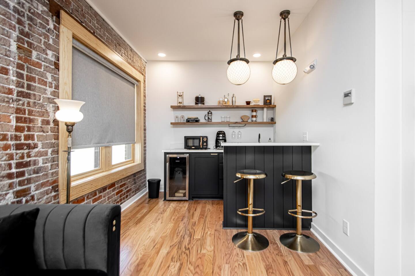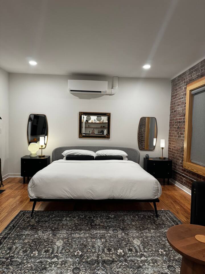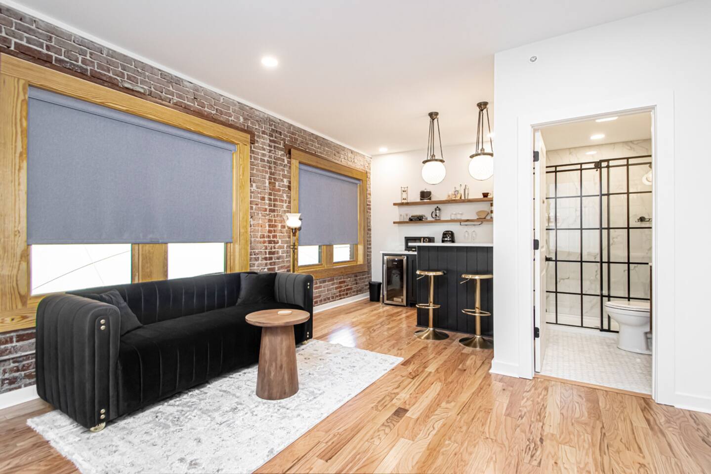 This gorgeous building sits in the heart of historic downtown Hot Springs. Its prime location, slice of history (on the National Register of Historic Places), & elevated style make it the perfect getaway! Walk to Bathhouses, Trails, Restaurants! KEY FEATURES: ☀ King-sized bed w/ high end Centium Satin linens ☀ Kitchenette w/ specialty coffee & cocktail equipment ☀ Shared front and back patio’s w/ fire pits ☀ 55” Roku TV w/ Hulu + Live subscription ☀ Fiber internet