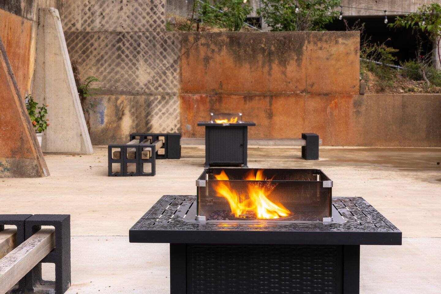 In addition to your studio you will have access to the back upper patio w/ lots of seating options and 2 fire pits to enjoy.
