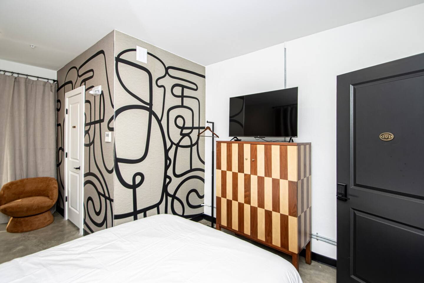 Gorgeous building sits in the CENTER of historic DOWNTOWN Hot Springs. Its prime location, slice of history (on the National Register of Historic Places), & elevated style make it the perfect getaway! 1 of 12 rooms in building- Walk to Bathhouses, Trails, Restaurants! KEY FEATURES: ☀ Queen-sized bed w/ high end Centium Satin linens ☀ Large outdoor patio area w/ seating and fire pits ☀ 43” Roku TV w/ Hulu + live ☀ Fiber internet ☀ SMEG coffee maker & SMEG fridge ☀Total renovation in 2024