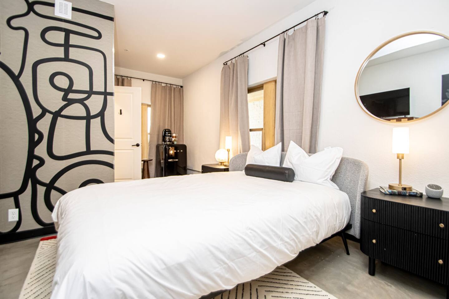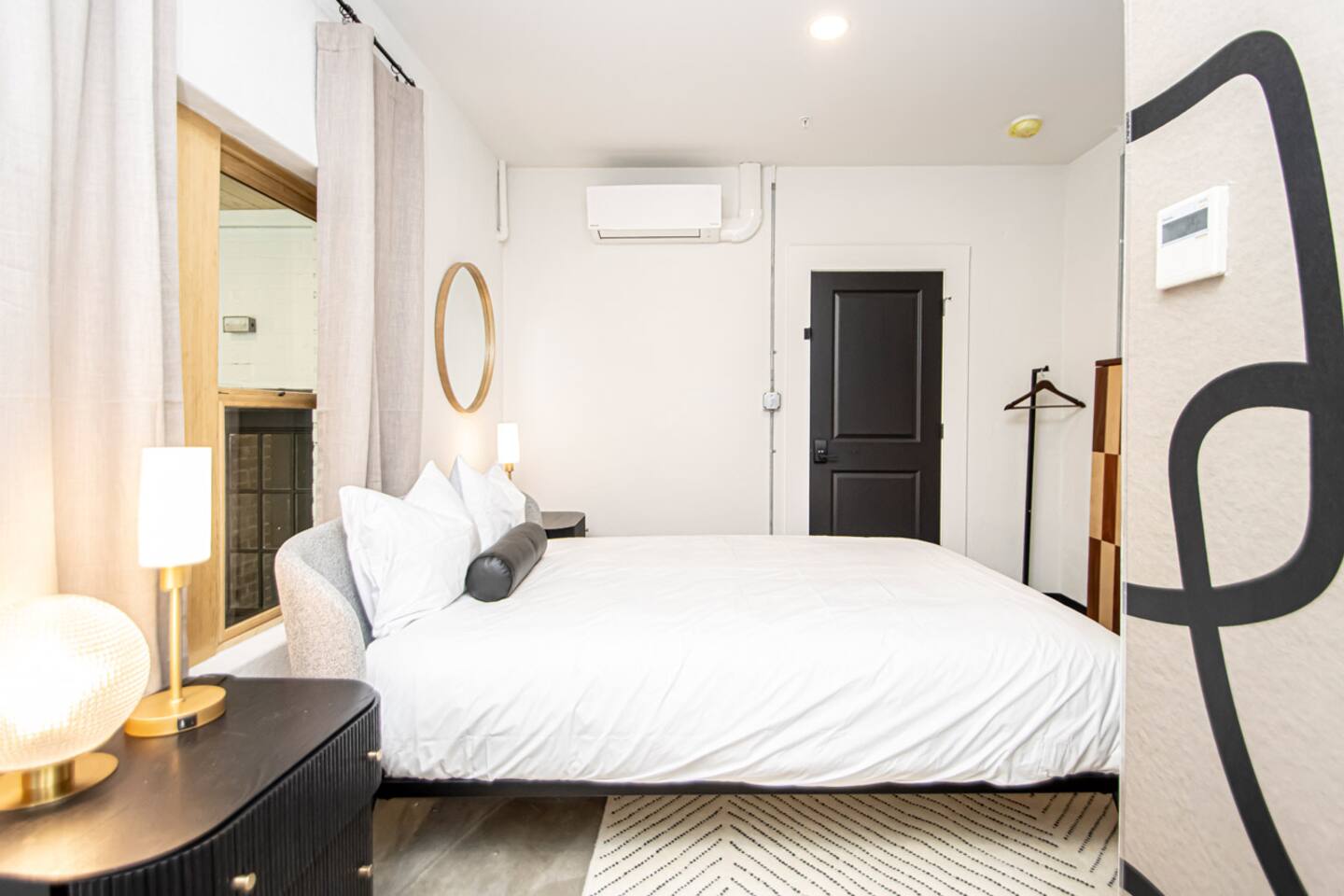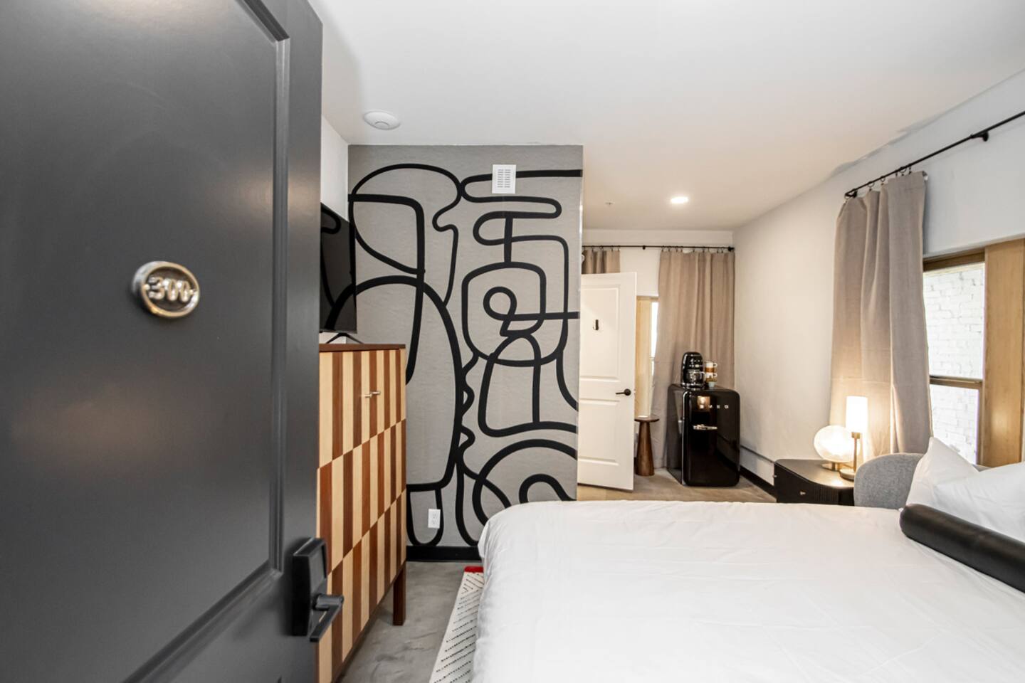 1 of 12 rooms in this gorgeous building that sits in the heart of historic downtown Hot Springs. Its prime location, slice of history (on the National Register of Historic Places) & elevated style make it the perfect getaway! Walk to Bathhouses, Trails, Restaurants! KEY FEATURES: ☀Queen-sized bed w/ Centium Satin linens ☀ Shared patio w/ fire pits ☀ 43” Roku TV w/ Hulu + Live ☀ Fiber internet ☀ SMEG drip coffee maker w/ Locally roasted coffee ☀Marble floored bathroom w/ teak wood vanity