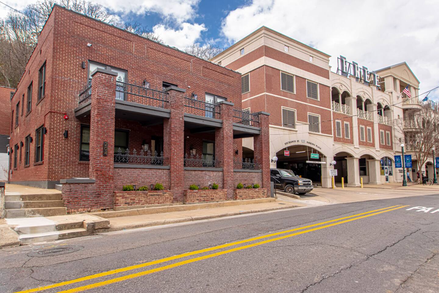 We are steps to the bathhouses, restaurants, entertainment, bars, and trails! Located just behind Bathhouse Row on Exchange St. See the bathhouses from your front patio! We are located between a public parking garage and a paid lot.