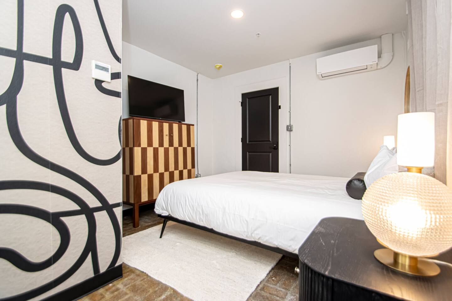 Gorgeous building sits in the CENTER of historic DOWNTOWN Hot Springs. Its prime location, slice of history (on the National Register of Historic Places), & elevated style make it the perfect getaway! 1 of 12 rooms in building Walk to Bathhouses, Trails, Restaurants! KEY FEATURES: ☀ Queen-sized bed w/ high end Centium Satin linens ☀ Large outdoor patio area w/ seating and fire pits ☀ 43” Roku TV w/ Hulu + live ☀ Fiber internet ☀ SMEG coffee maker & SMEG fridge ☀Total renovation in 2024
